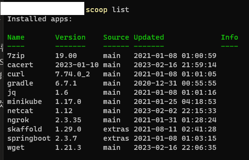 scoop 명령을 통해 사용하면 되는데 다음 명령어로 필요한 유틸리티를 설치할 수 있다.